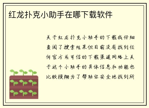 红龙扑克APP下载与安装 你可以通过以下方式下载红龙扑克APP: | 操作步骤 | 关键说明 | | :-- | :-- | | 访问官网 | 在浏览器中输入官方网址 访问官网。在官网首页通常能找到明显的下载按钮。 | | 设备适配 | 无论是安卓还是iOS设备,都可以在官网上找到对应的应用程序版本。 | | 安卓安装 | 下载APK文件后,安装前需进入手机「设置」>「安全设置」> ...
